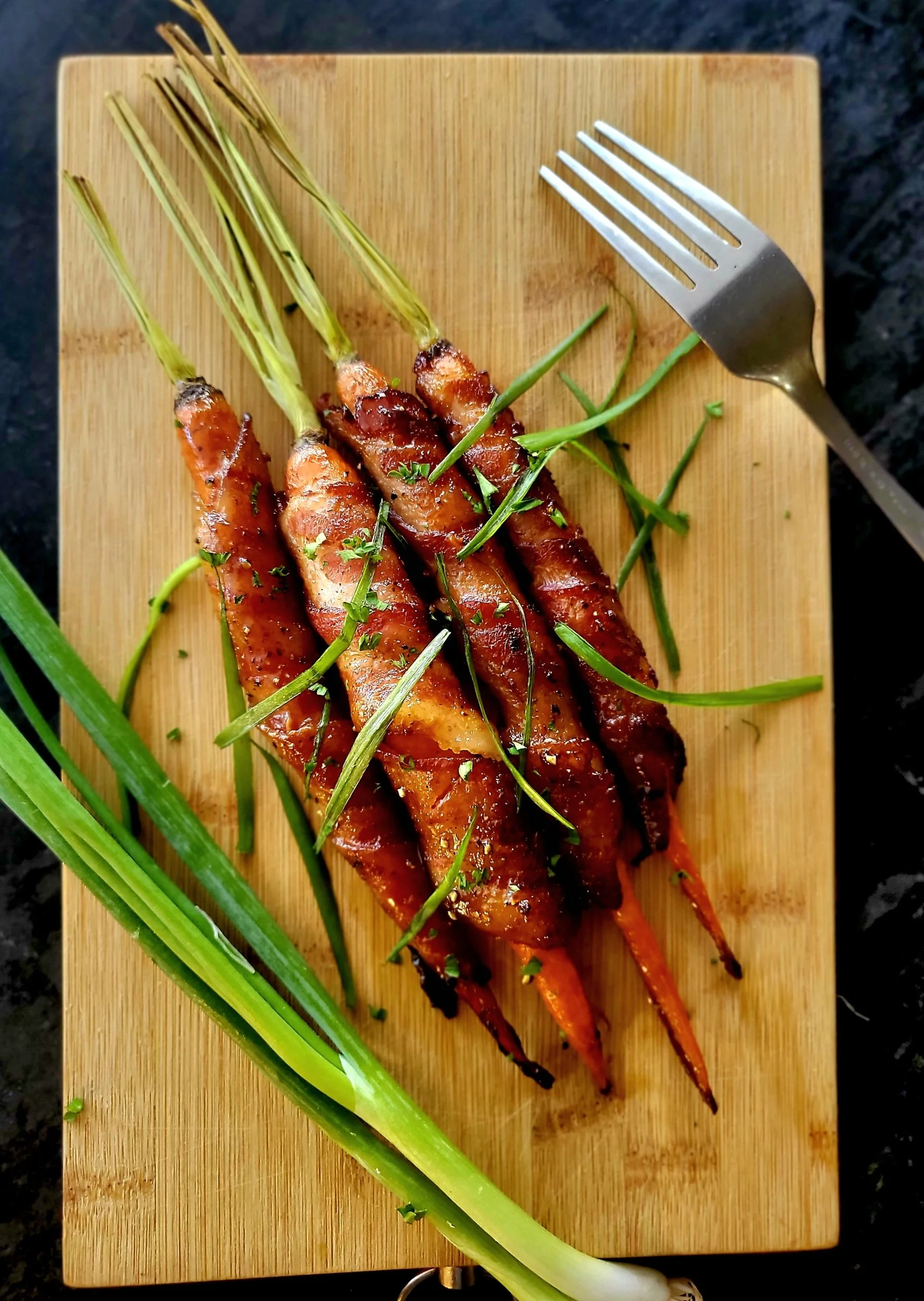 Maple Sriracha Glazed Bacon Wrapped Carrots